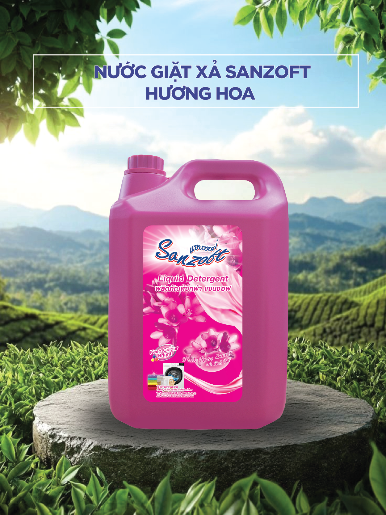 - Sanzoft – Nước giặt xả 6 trong 1 giúp giữ màu, làm mềm và tơi xốp sợi vải, mang lại cảm giác dễ chịu khi mặc.