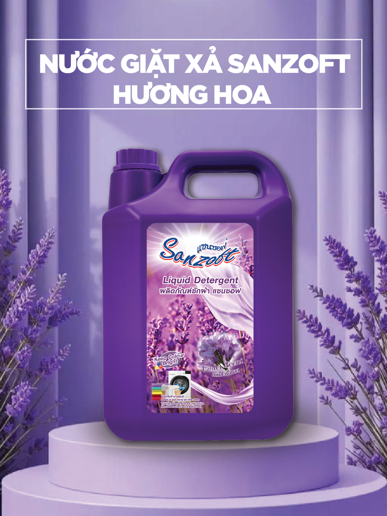 Nước Giặt Xả Đậm Đặc Sanzoft Hương Violet (màu tím) 5000Ml